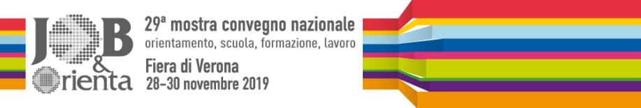 Da giovedì 28 a sabato 30 novembre 2019, torna, alla Fiera di Verona, la 29esima edizione di JOB&Orienta, il salone nazionale gratuito dedicato all’orientamento, la formazione, la scuola e il lavoro.