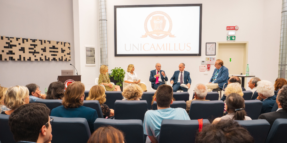 Il Prof. Paolo Miccoli, Prorettore alle relazioni istituzionali di UniCamillus, tirando le fila del dibattito ha infine precisato che: “La sanità non deve essere vista come un costo per lo Stato. La sanità al contrario può produrre ricchezza, in primis ricchezza sociale”. Ed è in questa direzione che UniCamillus intende proseguire il proprio impegno, per dare sempre più il proprio contributo al miglioramento del benessere di tutti i contesti sociali con i quali si trova a confrontarsi nelle sue molteplici attività.
