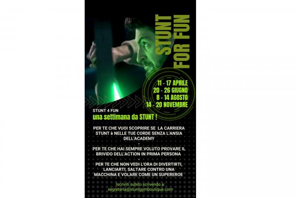 ...è un programma intensivo di studio che si svolge dal Venerdì alla Domenica presso la asd Stunt Gym Boutique. Verranno trattati tutti gli elementi necessari... Impara:: Cinema italiano, Cinema d'azione, Guida sportiva...