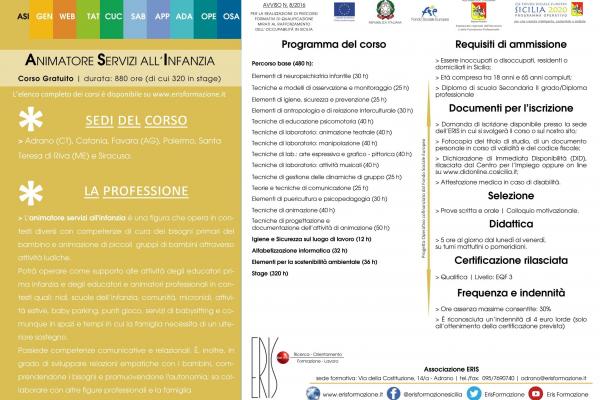 L'animatore servizi all'infanzia è una figura che opera in contesti diversi con competenze di cura dei bisogni primari del bambino e animazione di piccoli gruppi di bambini attraverso attività ludiche.