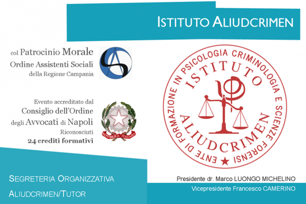 — Con delibera del 25.10.2016 il Consiglio dell'Ordine degli Avvocati di Napoli ha attribuito al Corso Specialistico di Criminologia Clinica e delle Investigazioni dell'Istituto Aliudcrimen n. 24 crediti formativi (Istituto Aliudcrimen, Prot. 11160/2016).