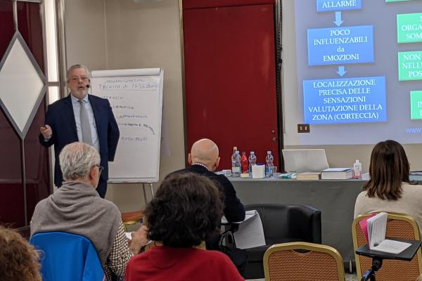 10.00 – 11.30 Distinzione tra prima induzione e induzioni successiveDimostrazioni di induzioni sugli allievi e prove degli allievi fra di loroInterpretazione della gestualità, della mimica e della postura del soggettoLa corretta prossemica tra soggetto e induttore- Visione di filmati (A. Gonella)