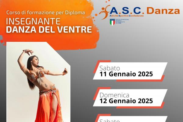 Il centro A.S.C. DANZA presenta su emagister.it il corso di Formazione per diploma di Maestra Danza del Ventre (I livello) rivolto a tutti coloro che desiderano diventare maestri di questa danza e che si svolgerà presso l'A.S.C. DANZA a Roma.