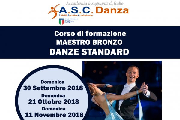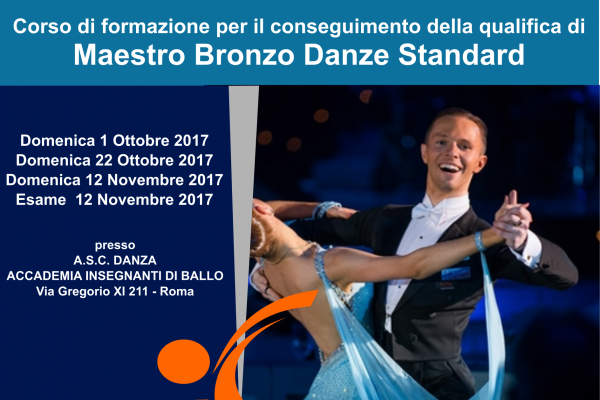 Esistono tre livelli propedeutici di corso Oro, Argento e Bronzo, ognuno dei quali ha la durata di 21 ore distribuite in tre giorni. Sarà richiesto ai partecipanti di preparare tesine scritte per alcune discipline. La sede del corso è quella dell’Accademia ASD a Roma. Al termine di ogni corso è previsto un esame finale per poter passare al livello successivo; l’obiettivo del corso è il conseguimento del diploma di Insegnante di Danze Standard.