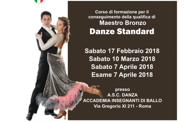 L'obiettivo principale del corso è quello di fornire il giusto metodo di insegnamento didattico delle Danze Standard e conseguire il Diploma di Maestro di Ballo nella specialità Danze Standard