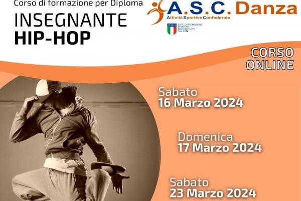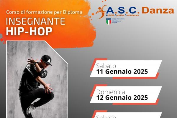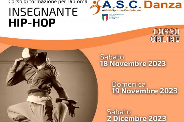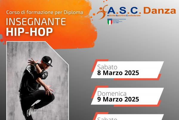 La finalità del percorso professionale è quella di creare una figura di Insegnante di Hip Hop con un notevole bagaglio di competenze tecniche della disciplina che lo renderà professionista del settore.Tale formazione professionale consentirà ai partecipanti di conseguire, previo esame finale, il diploma e il tesserino di Insegnante in Hip Hop rilasciato da ASC, ente di promozione sportiva riconosciuto CONI e valido per l’insegnamento in tutti i centri sportivi, associazioni, scuole di ballo e danza. Diploma valido ai fini delle agevolazioni fiscali per l’attività Sportiva Dilettantistica (ART. 25 del DLGS 36 del 2021).