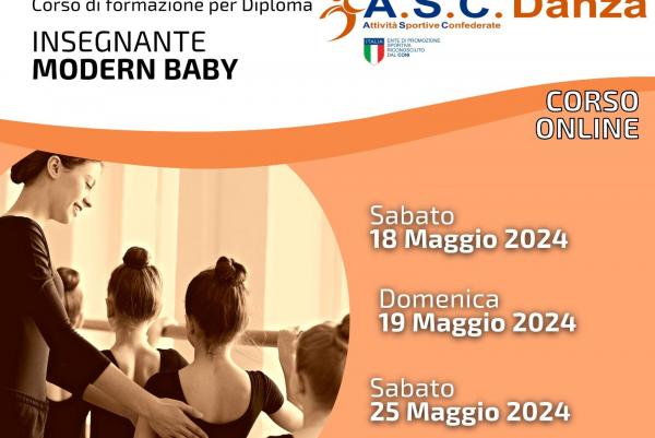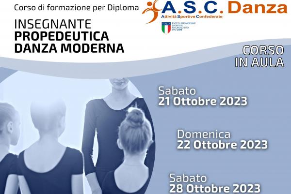 Corso di formazione per il conseguimento del Diploma di Insegnante di Propedeutica alla Danza Moderna certificato a livello nazionale da ASC Attività Sportive Confederate, Ente di Promozione Sportiva riconosciuto dal CONI.