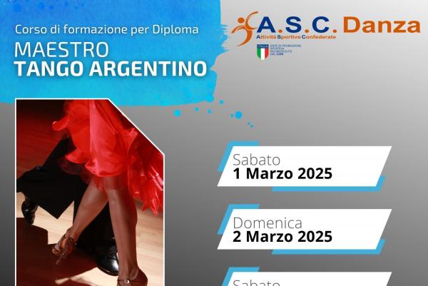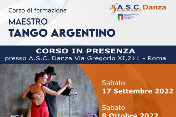 Il corso di formazione per conseguire il diploma e l'abilitazione all'insegnamento del Tango Argentino propone al corsista delle valide metodologie di insegnamento delle Danze Argentine e la preparazione del programma di studio dell'esame di fine corso per ottenere la qualifica di Maestro di Tango Argentino.