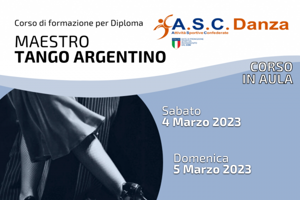 A.S.C DANZA presenta sulla piattaforma emagister.it il corso per l’abilitazione a Insegnantedi Tango Argentino, rivolto a tutti coloro che dispongono già di buone conoscenze dei passi e delle figure del ballo e che desiderino diventare Maestri in questa specialità. Al termine del corso verrà rilasciato un diploma valido per l’insegnamento e l’apertura di corsi di ballo in palestre, club scuole di ballo, scuole di danza e in tutti i centri sportivi.