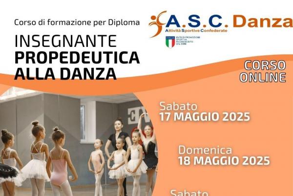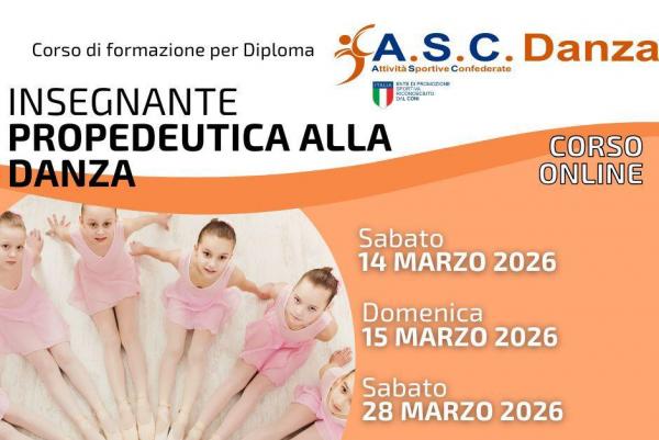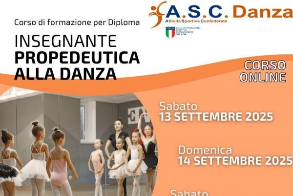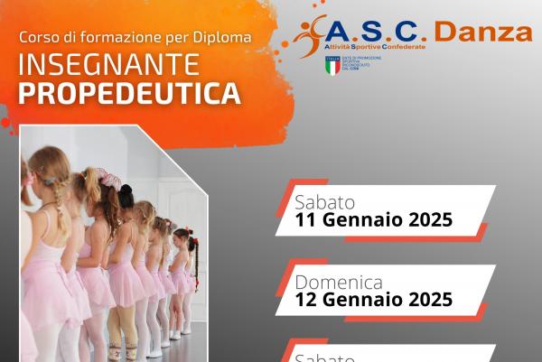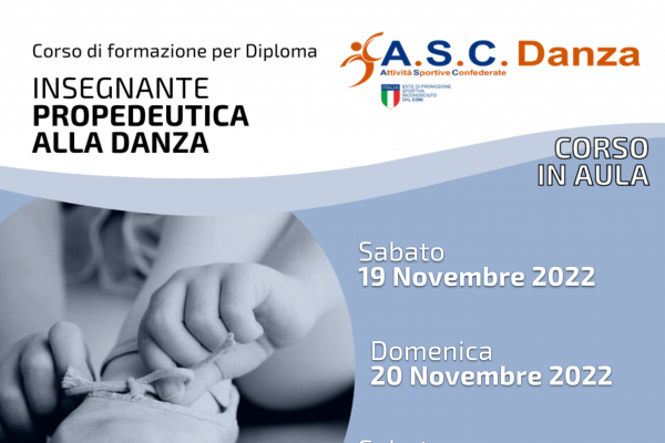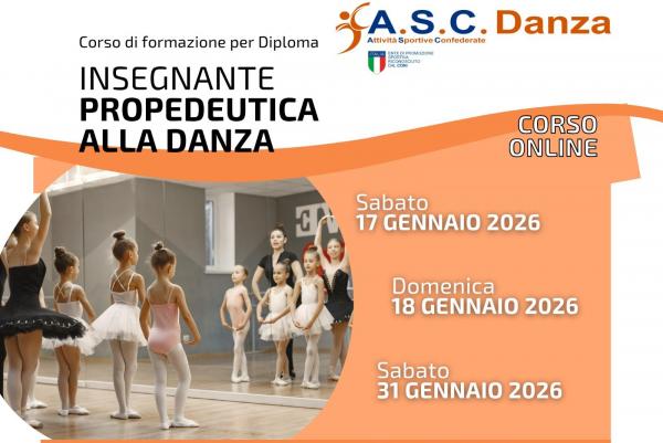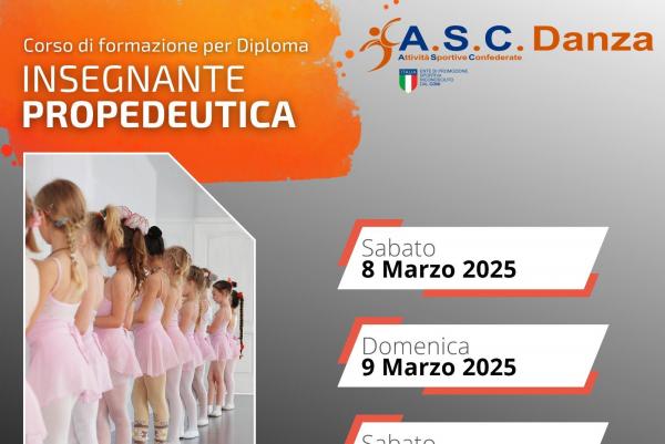 Corso di formazione per conseguire il diploma di Insegnante di Propedeutica alla Danza. Esame per ottenere il diploma e l'abilitazione all'insegnamento della danza e del ballo a cura dell' A.S.C. DANZA.
