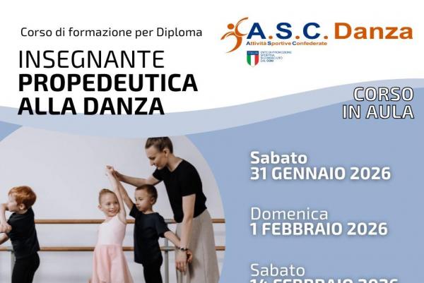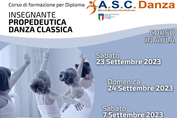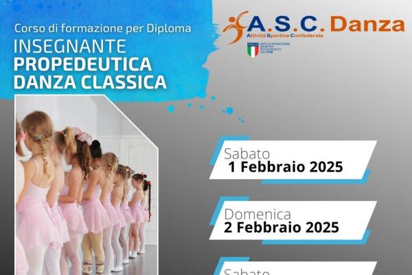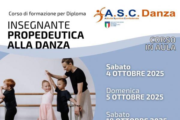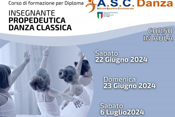 Corso di formazione per conseguire il diploma di Insegnante di Propedeutica alla Danza. Esame per ottenere il diploma e l'abilitazione all'insegnamento della danza e del ballo a cura dell' A.S.C. DANZA.