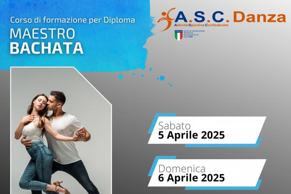 Corso di formazione per il conseguimento del Diploma di Maestro Bachata certificato a livello nazionale da ASC Attività Sportive Confederate, Ente di Promozione Sportiva riconosciuto dal CONI.