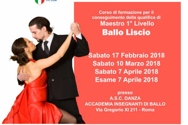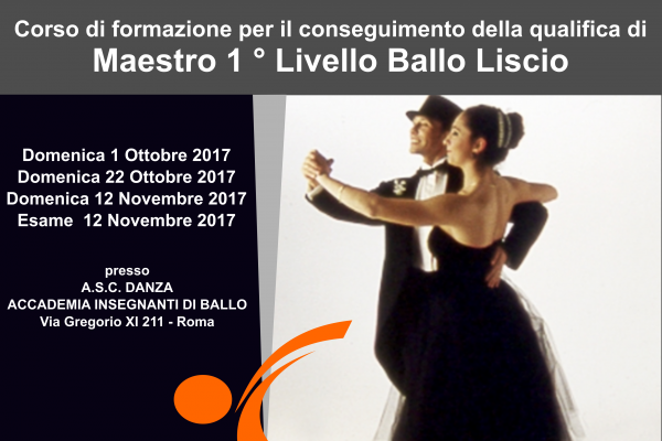 Primo livello: Maestro Ballo Liscio Bronzo e Argento (qualifica di primo livello che fornisce l'abilitazione all'insegnamento della disciplina);