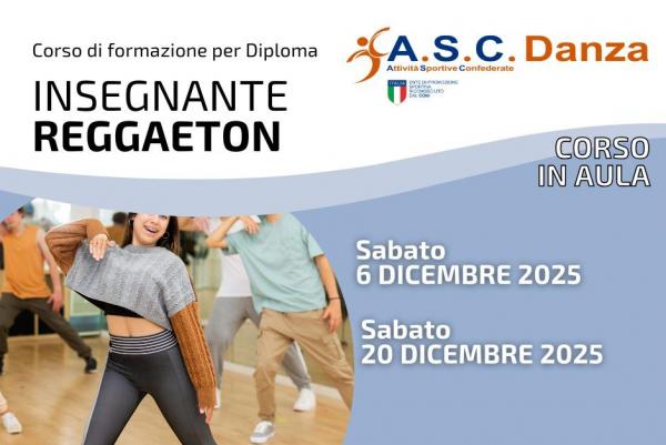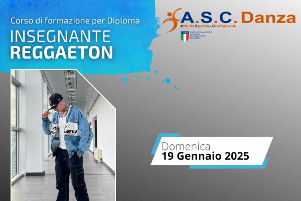 Il corso di formazione professionale per la qualifica di Insegnante di Reggaeton ha lo scopo di preparare insegnanti qualificati e capaci di trasferire con competenza ai propri allievi la suddetta disciplina. Con l'esame finale verrà rilasciato il diploma nazionale di Insegnante di Reggaeton dall'Ente A.S.C riconosciuto dal C.O.N.I