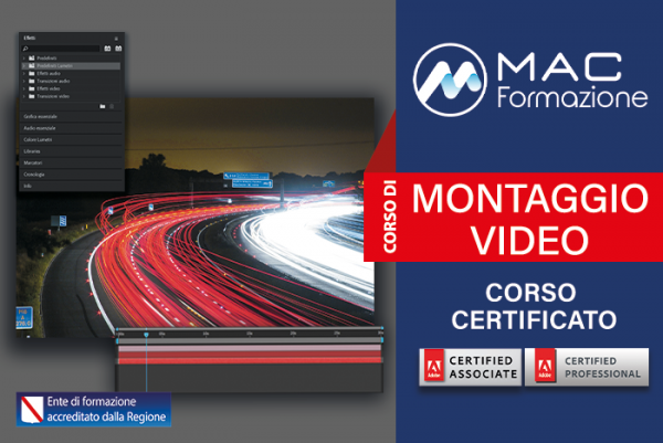 Il corso Montaggio Video , al termine della formazione completata con profitto, rilascia un attestato numerato e personale, tracciabile attraverso il sito Web con certificazione ente ISO 9001:2015 EA37 per la formazione professionale valida in tutta Europa.Inoltre è possibile sostenere anche l’esame di certificazione Adobe.