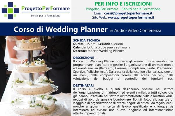 Il corso fornisce gli elementi indispensabili per programmare, pianificare e gestire l'organizzazione di un matrimonio ed eventi similari (Battesimi, Cresime, Compleanni, Feste, Premiazioni Sportive, Politiche, ecc...).