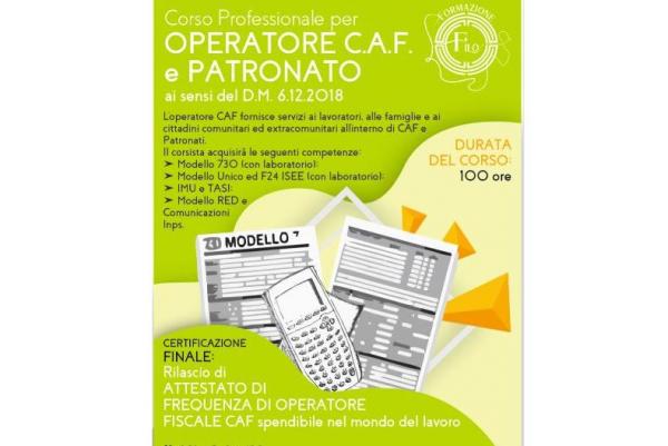 L'operatore CAF fornisce servizi ai lavoratori, alle famiglie e ai cittadini comunitari ed extracomunitari all'interno di CAF e Patronati. Si può scegliere di frequentare (uno o entrambi) il corso base di 56 ore, o il corso avanzato di 42 ore. In generale, il corso si articola in lezioni teoriche e pratiche.