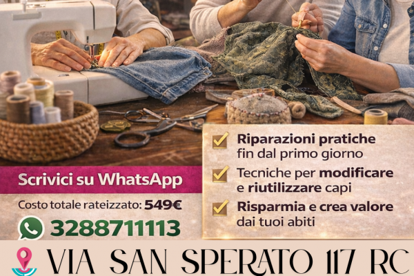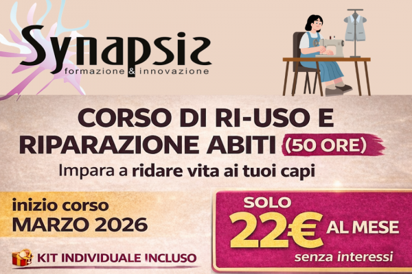 Il centro SYNAPSIS FORMAZIONE & INNOVAZIONE pubblica su emagister.it il corso di Sartoria, Riparazione e Trasformazione Abiti.